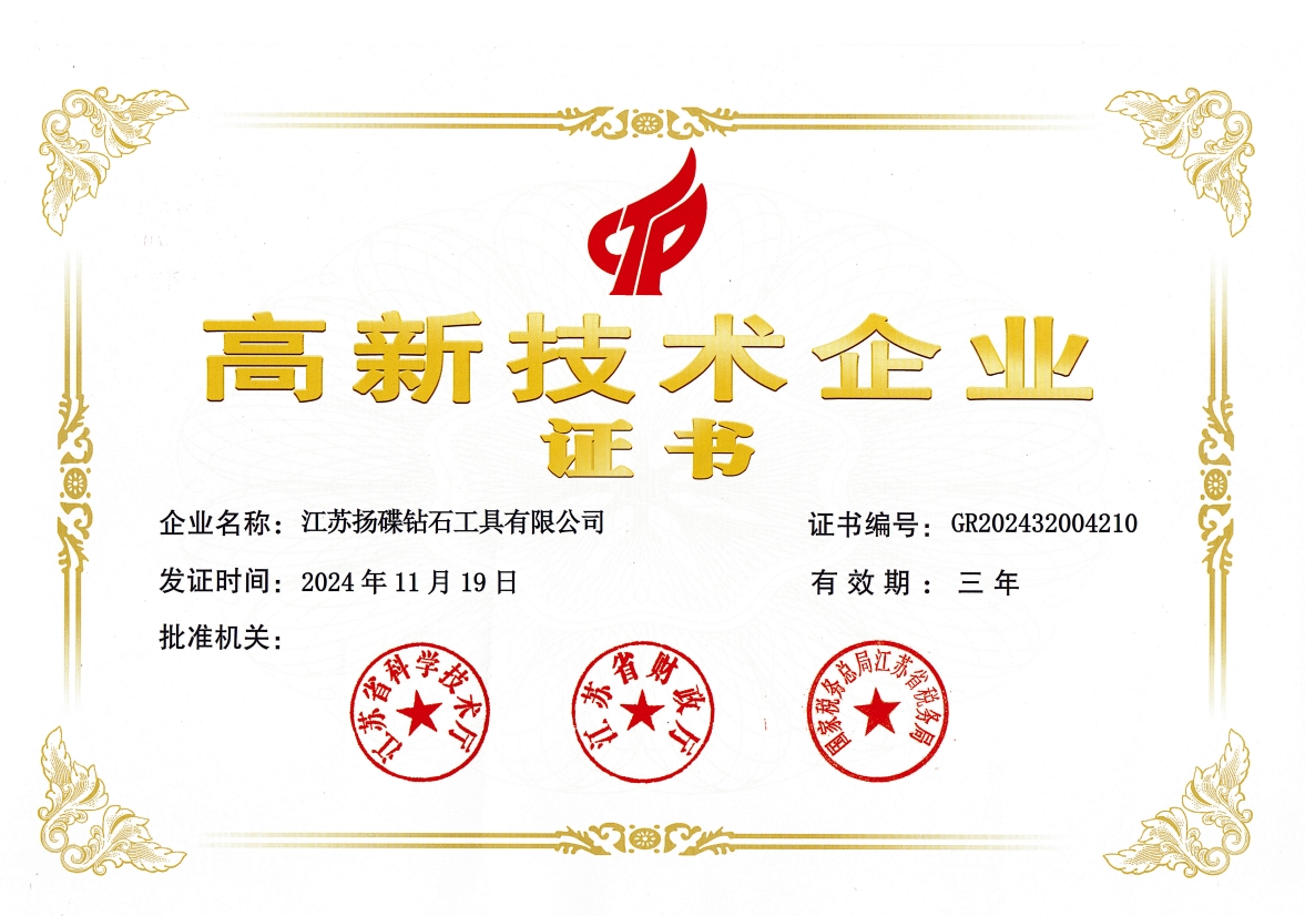 多年來(lái),企業(yè)通過(guò)ISO9001國(guó)際質(zhì)量體系認(rèn)證,被中國(guó)中輕產(chǎn)品質(zhì)保中心授予“全國(guó)金剛石制造行業(yè)質(zhì)量放心滿(mǎn)意單位”,獲得江蘇省高新技術(shù)企業(yè)稱(chēng)號(hào),榮獲江蘇省小巨人稱(chēng)號(hào),變速箱PCD復(fù)合鉆鉸刀獲省高新技術(shù)產(chǎn)品等等。